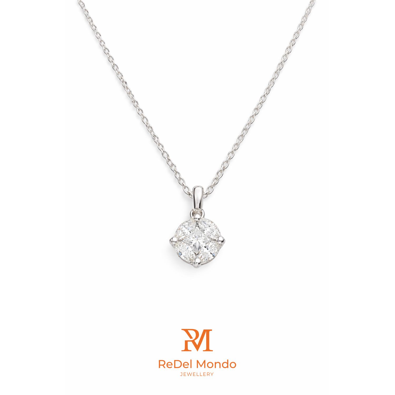 This exquisite ring from the ReDel Snowflake collection is crafted from 18k Italian white gold and features 30 round-cut diamonds, showcasing a delicate floral design.