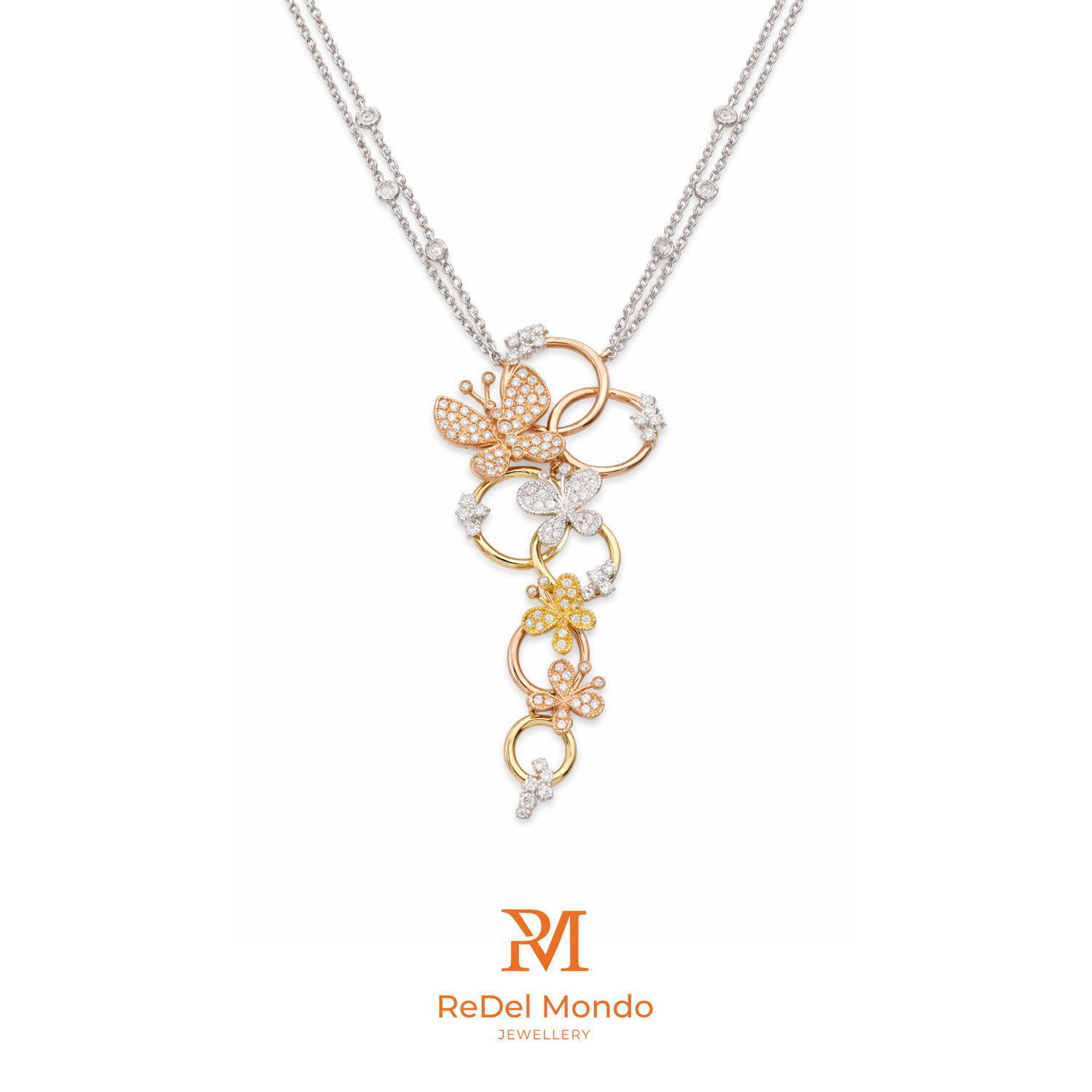 ✨ Introducing our enchanting necklace from the ReDel Zoo Collection, beautifully crafted from 18k Italian White, Rose, and Yellow Gold, and adorned with 136 dazzling round-cut diamonds! ✨